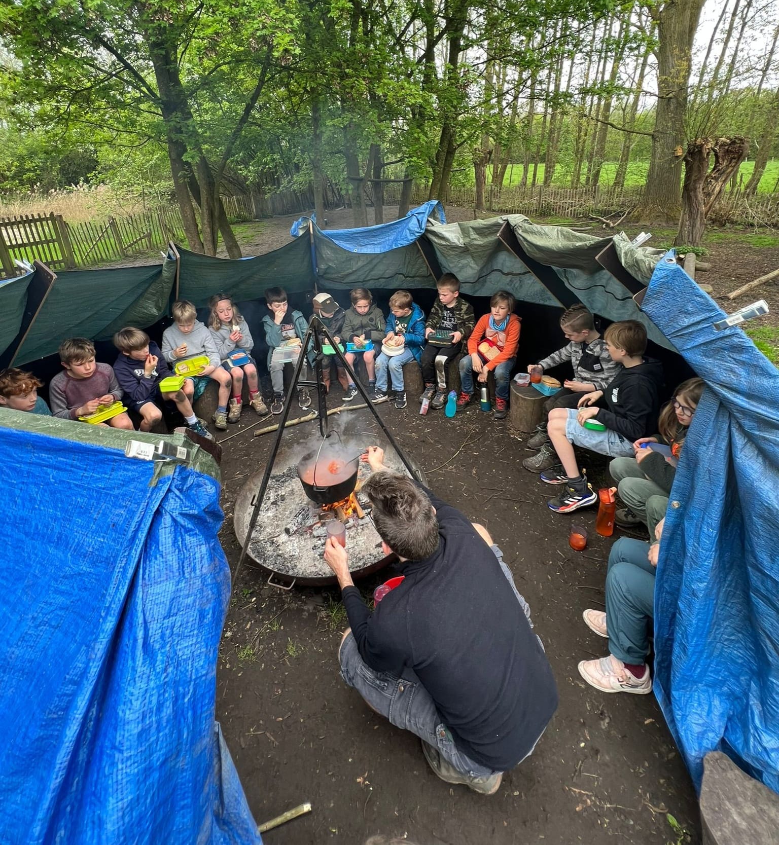 Wat we doen: gewoon buiten spelen. Kampen bouwen, vuur maken, zweethut, zakmesvaardigheden, crossen in de bossen, putten graven, ...